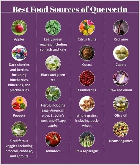 It’s naturally found in foods like apples, onions, berries, grapes, and citrus fruits. It’s also present in kale, broccoli, and black tea.